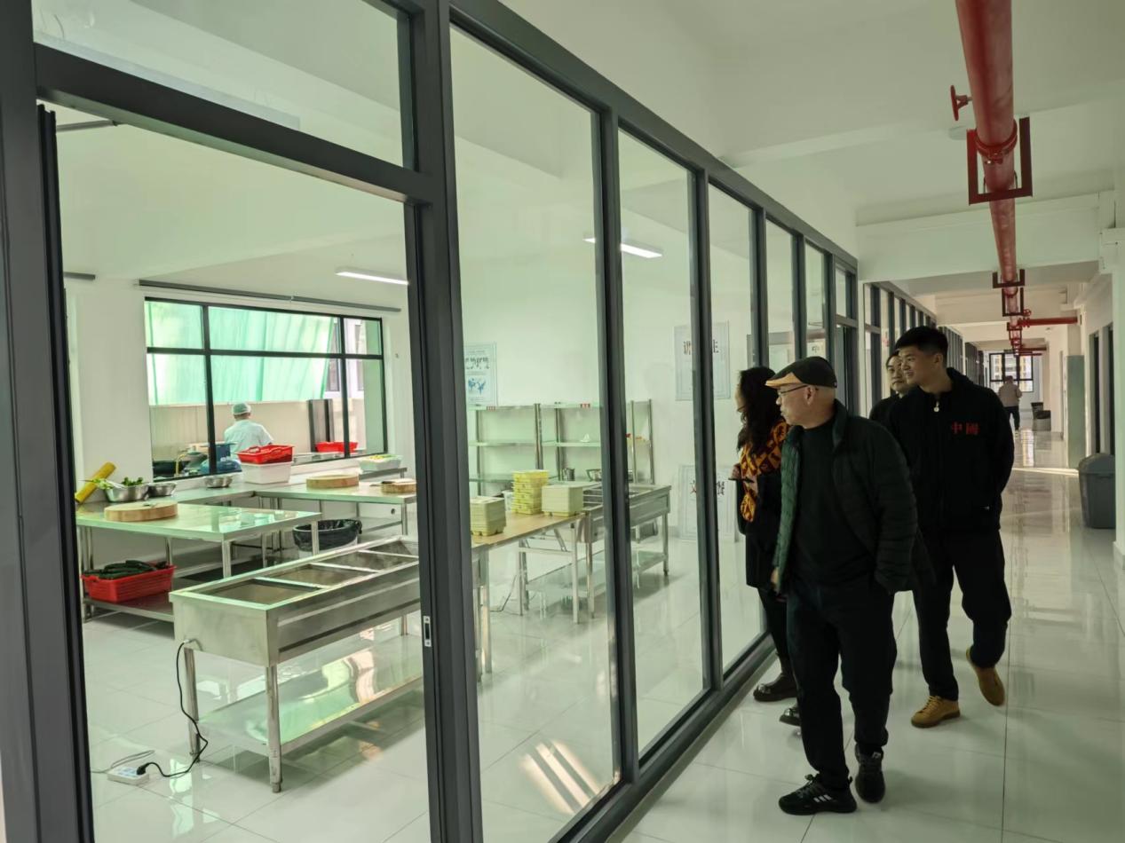 公司领导同教师与后勤交流共同保证员工在新校区衣食住行得到保障